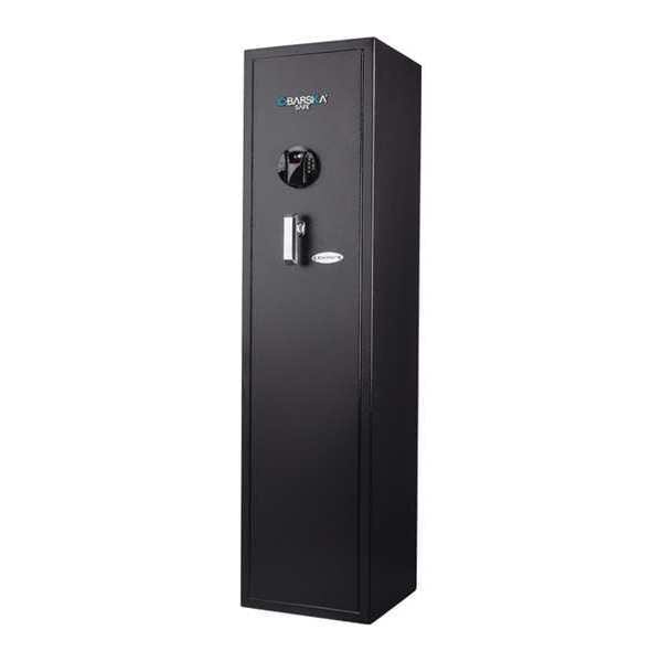 Gun Safe, Color Black, Net Weight 66 lb, Capacity 4.3 cu ft, Fire Rating Not Rated, Water Endurance 0, Material Steel, Finish Textured, Finger Print Memory 120, Lock Style Biometric, Key, 2 Number of Shelves, Number of Bolts 3, Outside Height 52 1/4 in, Outside Width 13 in, Outside Depth 13 in, Inside Height 52 in, Inside Width 12 1/2 in, Inside Depth 11 1/2 in, Door Opening Height 9 in, Door Opening Width 49 in, Door Plate Thickness 1/8 in, Wall Thickness 1/8 in, Holds (2) Guns, (5) Rifles