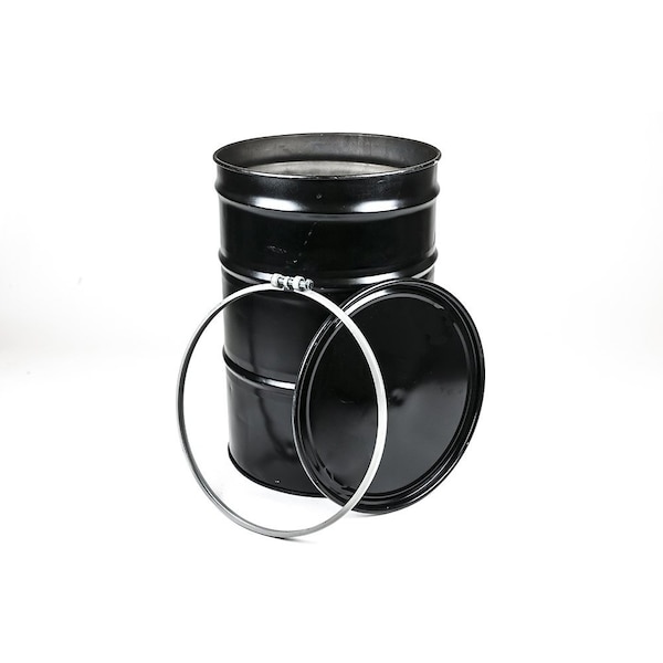 55 Gal Reconditioned Open Head Drum, Steel, Black