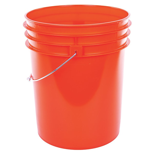 Storage Pail, Bucket/Pail Material Plastic, Color Orange, Handle Material Metal, Head/Closure Type Open Head, Includes Lid Lid Not Included, Maximum Operating Temperature 150 Degrees F, Overall Diameter 11 7/8 in, Overall Height 14 7/8 in, Overall Width Not Applicable, Shape Round, Standards FDA Approved, UN Rated, Volume Capacity 5 gal, FDA Approved FDA Compliant, NSF Standards Not NSF Certified, UN Standards 1H2/Y1.5/50, Overall Length Not Applicable, Autoclaveable Not Autoclavable Material