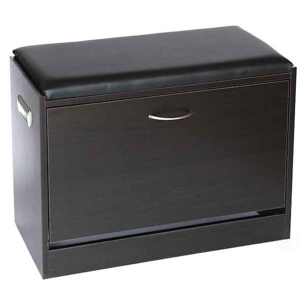 Organize your shoe collection with the Basicwise Black Wooden Fold-out Shoe Organizer. Designed with a hidden fold out rack, it provides storage for up to nine pairs of adult shoes. The shoe racks neatly fold closes, leaving only a sleek drawer exterior for display. Its padded leather top serves as a comfy stool for when you need a seat.