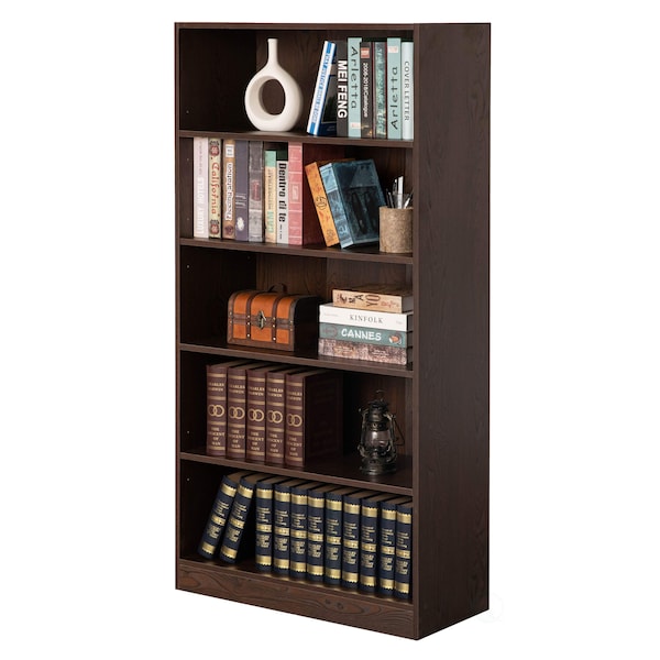 This multifunctional free-standing bookshelf offers reliable storage space in any room. It will create a simple and classic appearance anywhere placed. This bookcase offers 5 open shelves with 3 adjustable shelves to keep your decor items such as plants, picture frames, decorative vases, and flowerpots handy. Your organization starts with this bookshelf._x000D_