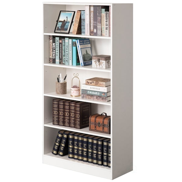 This multifunctional free-standing bookshelf offers reliable storage space in any room. It will create a simple and classic appearance anywhere placed. This bookcase offers 5 open shelves with 3 adjustable shelves to keep your decor items such as plants, picture frames, decorative vases, and flowerpots handy. Your organization starts with this bookshelf.