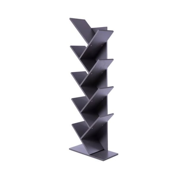 Wooden 9-Shelf Tree Magazine CD Storage Bookcase, Gray