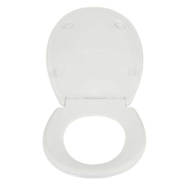Toilet seat; key dims; elongated; white; polypropylene; 400 lbs weight tested; fits all toilet brands