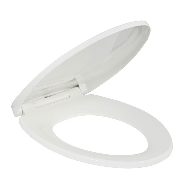 Toilet seat; key dims; elongated; white; polypropylene; 400 lbs weight tested; fits all toilet brands