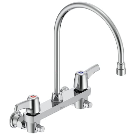 Commercial 23C6 Two Handle Widespread Lavatory Faucet With Gooseneck Spout - Less Pop-Up In Chrome