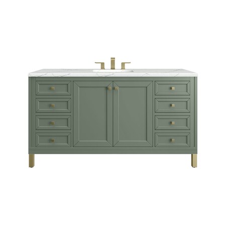 Chicago 60 in. Single Vanity, Smokey Celadon, w/ 3 CM Ethereal Noctis Silestone Top