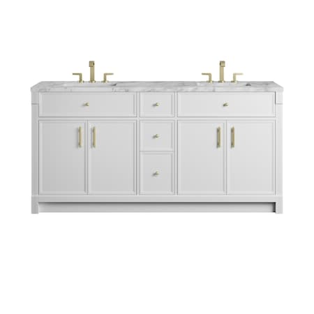 Bellshire 72" Double Vanity, Bright White w/ 3 CM Carrara Marble Top