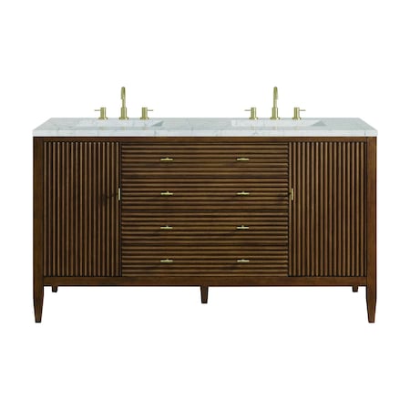 Myrrin 60'' D Vanity, Mid Century Walnut w/ Jasmine Pearl Silestone Top w/FreePower Wireless Charger