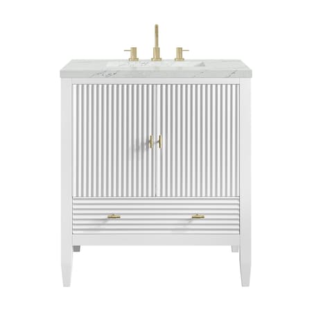 Myrrin 30" Single Vanity, Bright White w/ 3 CM Ethereal Noctis Silestone Top
