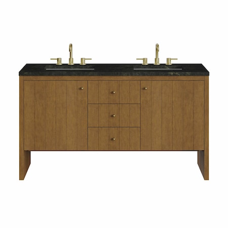 Brittany 60" Double Vanity, Pecan w/ 3 CM Charcoal Soapstone Silestone Top