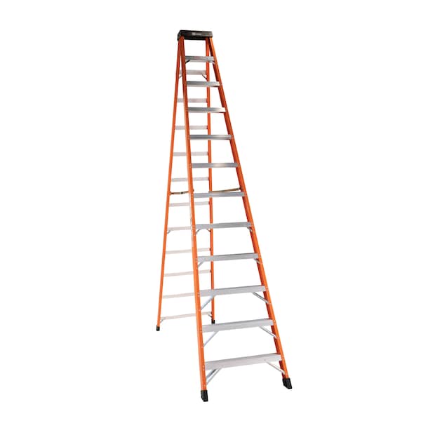 Bauer builds Professional Grade. This fiberglass single step ladder comes with a OHSA/ANSI compliant 300lb Type 1A Rating. All of our ladders are built with solid rivet construction. Our non-marring boots provide complete side rail protection and increased slip resistance on all surfaces. You will find comfort and lower fatigue when climbing our step ladders, as they provide a 20% gentler climing angle than our competition.