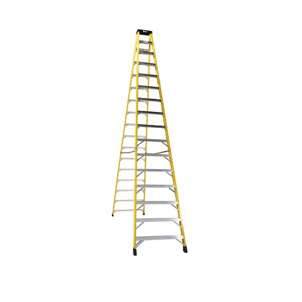 Bauer builds Professional Grade. This fiberglass single step ladder comes with a OHSA/ANSI compliant 300lb Type 1A Rating. All of our ladders are built with solid rivet construction. Our non-marring boots provide complete side rail protection and increased slip resistance on all surfaces. This ladder has reinforcement sleeves at spreader mount points to provide superior strength and durability. You will find comfort and lower fatigue when climbing our step ladders, as we provide a 20% gentler climing angle than our competition.