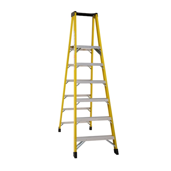 Bauer builds Professional Grade. This fiberglass platform ladder comes with a OHSA/ANSI compliant 375lb Type 1AA Rating. All of our ladders are built with solid rivet construction. Our non-marring boots provide complete side rail protection and increased slip resistance on all surfaces. This ladder provides a 215 sq. in. heavy gauge steel platform with safety tread to work from and brings you closer to your working area compared to other ladders. The uniquely designed, heavy gauge steel top cap holds tools, fasteners and small parts while fitting comfortably to your body.