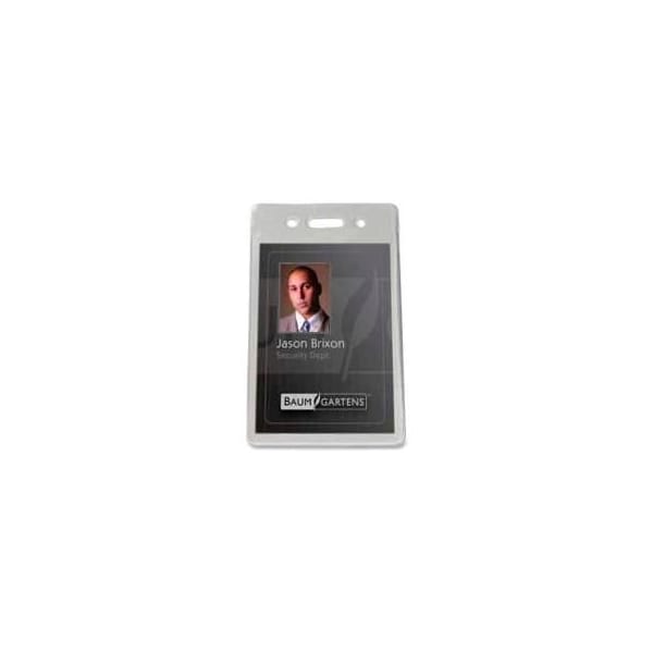 Baumgartens proximity badge holder, vertical, 2-3/8" x 3-1/2", 50/pack badge holders are designed to keep your valuable, high-tech proximity card safe, clean and secure. Thread a strap clip or neck chain adapter through both sides of the vinyl proximity badge holder to lock it into place. Id badge card (sold separately) cannot be removed when clip is attached.