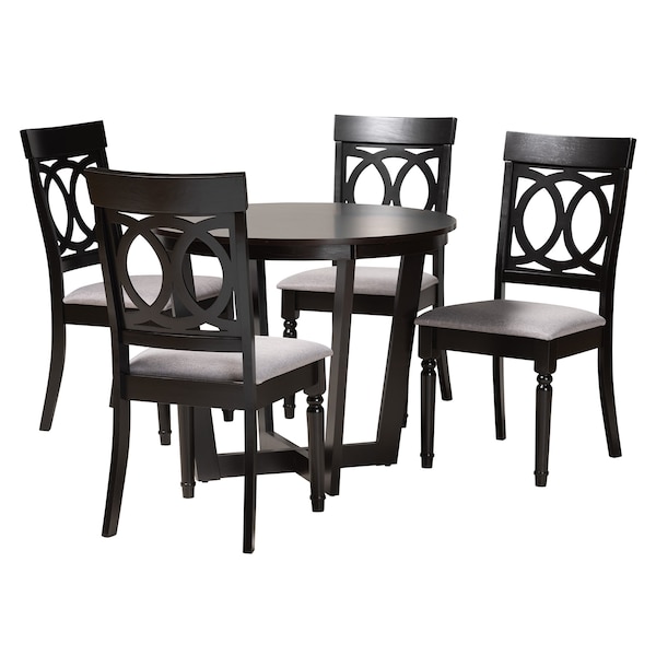 Featuring a cool, geometric profile, the Estelle dining set fills your space with modern elegance. Made in Malaysia, this stunning set includes one table and four chairs constructed from sturdy wood. Each chair is padded with foam and upholstered in soft fabric for superb comfort, while the lovely cut-out backrest lends smooth geometric appeal. The Estelle requires assembly and features a round tabletop to ensure ample space for each member of the table. The intersecting base of the tabletop lends an eye-catching sculptural effect, making the Estelle dining set an outstanding centerpiece of any layout.