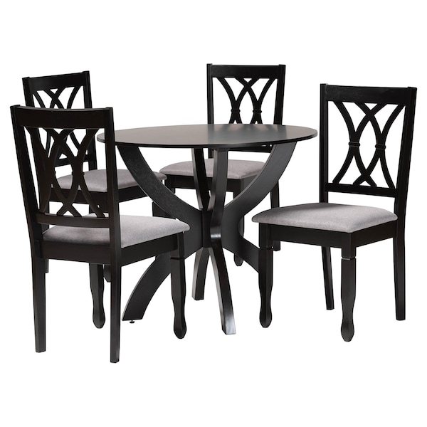 Redefine your dining space with the elegance and comfort of the April dining set. Made in Malaysia, the set includes four chairs and one table constructed from sturdy wood. Each chair is fitted with a foam-padded seat and upholstered in soft fabric. Requiring assembly, the broad, circular tabletop ensures plenty of elbow room for each member of the table. Whether used for casual or formal occasions, the April is sure to elevate any dining experience.