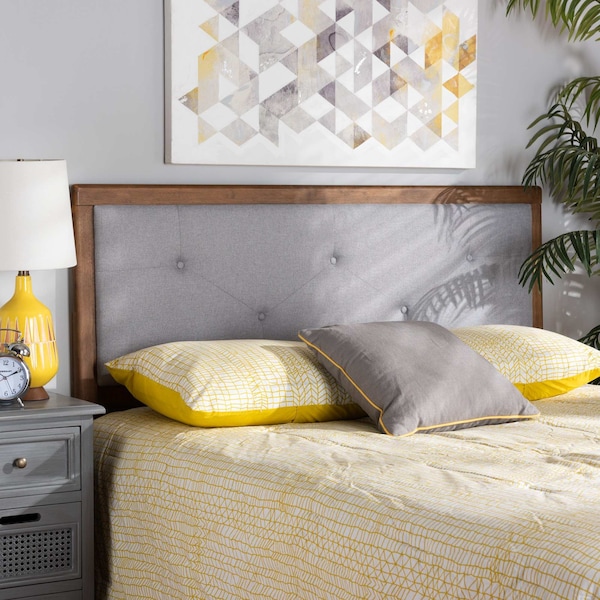 Abner Transitional Light Grey Fabric Upholstered and Walnut Brown Finished Wood Headboard-King