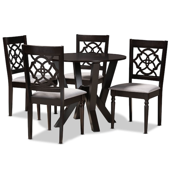 Alma Grey Upholstered and Dark Brown Finished Wood 5-Piece Dining Set