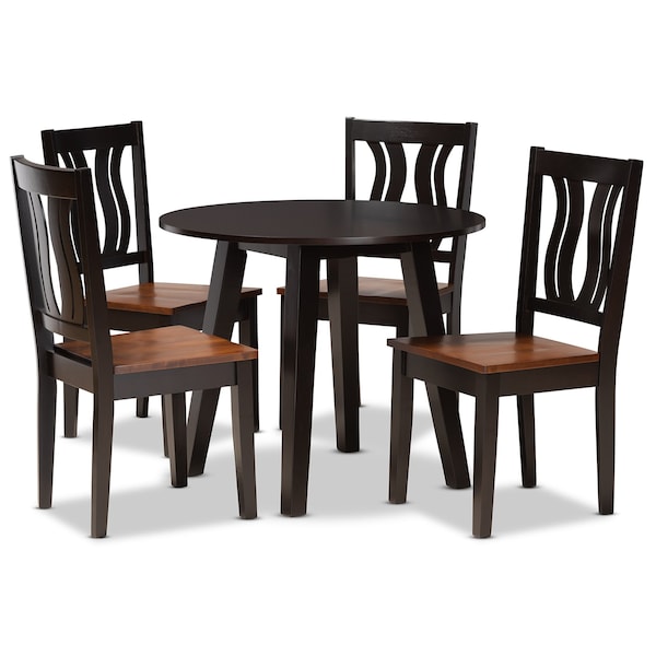 Anesa Modern Two-Tone Dark Brown and Walnut Brown Finished Wood 5-PC Dining Set (Discontinued)
