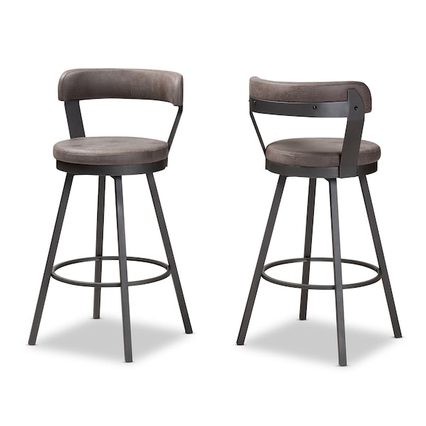 Arcene Rustic and Industrial Antique Grey Swivel Bar Stool, PK2