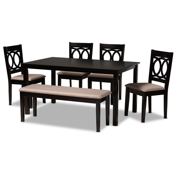 Bennett Sand Upholstered and Dark Brown Wood 6-Piece Dining Set