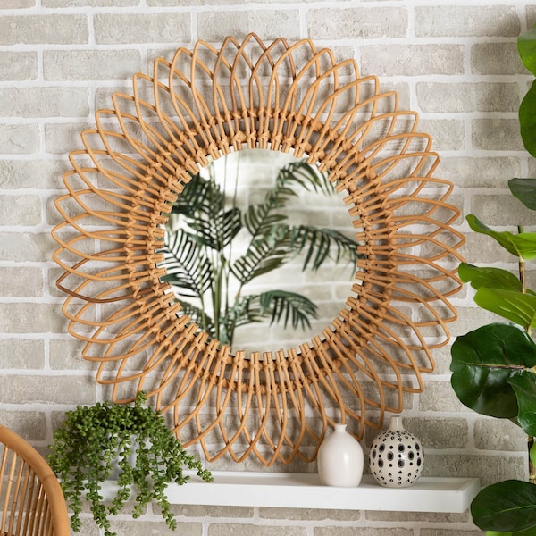 Bora Modern Bohemian Natural Brown Rattan Accent Wall Mirror