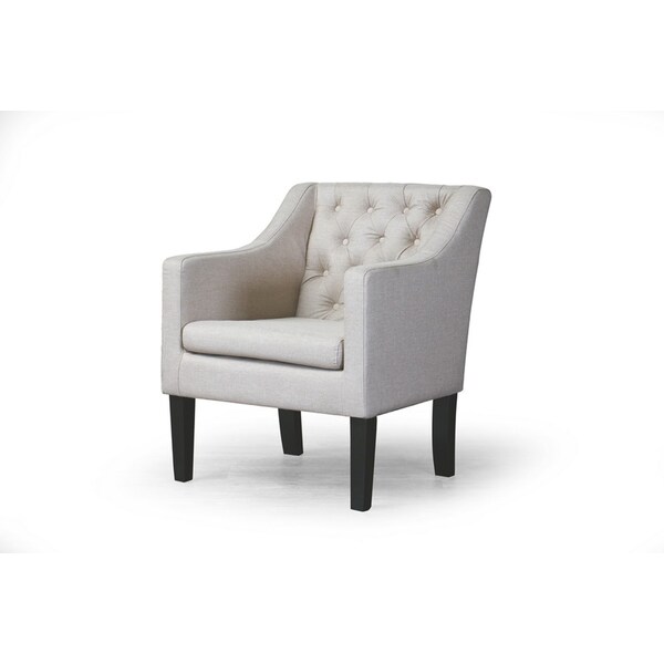 “Go ahead, it’s OK to sit down,” you’ll say to guests again and again. Our contemporary Brittany Club Chair expresses elegance. You couldn’t ask for more in a discount- furniture item: modern-styled, black-stained solid straight wood legs contrast spectacularly with tufted-detailed beige linen upholstery.