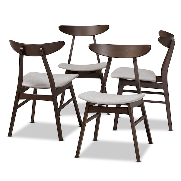 Britte Light Grey Upholstered Dark Oak Wood 4-Piece Dining Chair Set