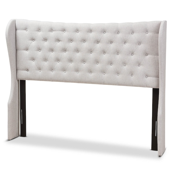 Cadence Beige Button-Tufted King Size Winged Headboard