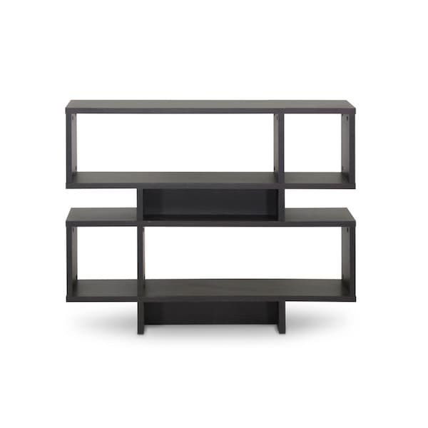 Inject a boost of dazzling contemporary interior fashion into your living space: our Cassidy Designer Bookshelf is a sculptural, eye-catching piece sourced from craftsmen. Made with smooth dark brown(Espresso) faux wood grain paper veneer, the Cassidy Display Shelf features an engineered wood frame built with four levels, three of which can be used for display of your decor collection. Dusting with a dry cloth is recommended for cleaning of this unit. A 6-level and 8-level option of the Cassidy Shelf are also available (each sold separately). Assembly is required.44"W x 11.375"D x 35.25"H , shelf(bigger): 31.25"W x 11.375"D x 10.68"H, shelf (smaller): 9.875"W x 11.375"D x 10.68"H