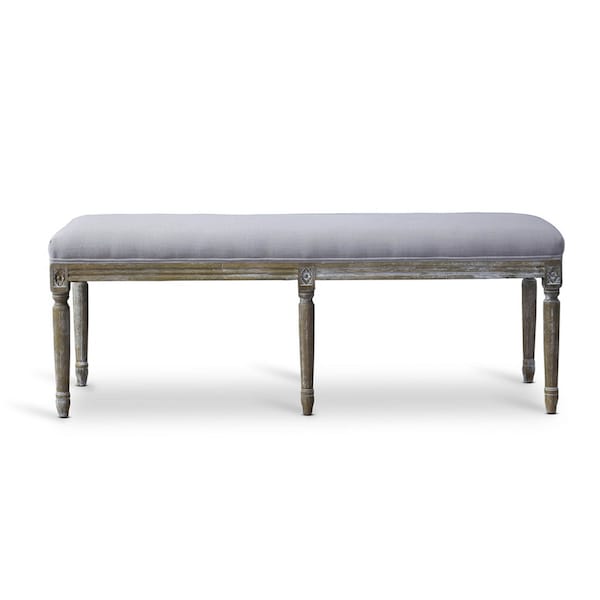 Boasting an authentic-looking distressed, antiqued finish (complete with white streaking), our Clairette Wood Traditional French Bench brings traditional style to the modern age. A genuine birch frame is paired with highly versatile neutral beige linen. Foam cushions provide comfort while a repeated floret motif heightens the elegance factor. Discount-minded decorating divas will adore this bench.