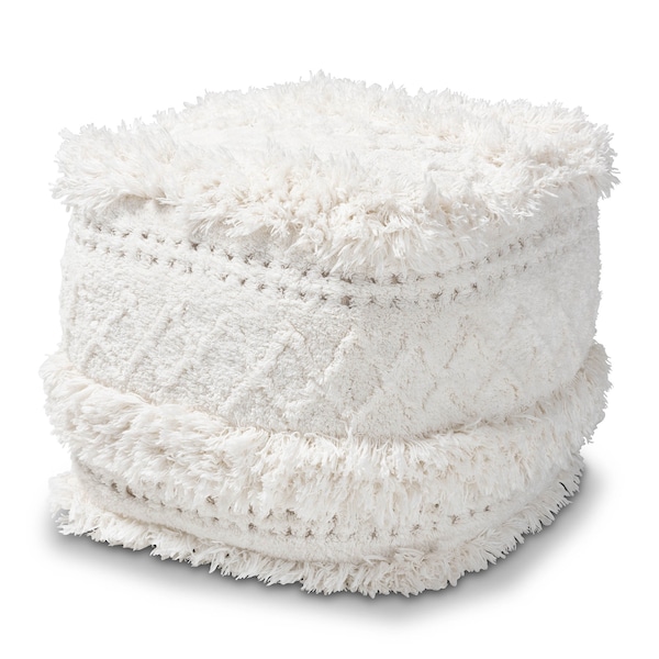 Add a cozy, bohemian touch to any space with the Curlew pouf. Handwoven from a soft, fleece-like cotton, the Curlew features a chic ivory hue. Its rich mix of textures adds interest to even the simplest spaces. This versatile piece can be used as a seat, footstool, or casual coffee table.