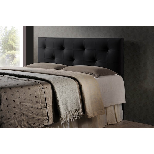 Dalini Queen Black Faux Leather Headboard with Faux Crystal Buttons