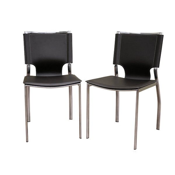 Dark Brown Leather Dining Chair With Chrome Frame, PK2