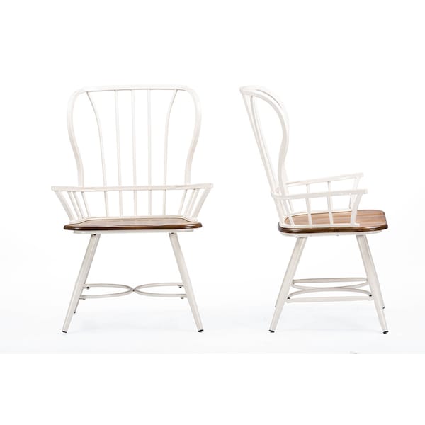 "Dark-Walnut" Wood and White Metal Vintage Dining Arm Chair, PK2 (Discontinued)