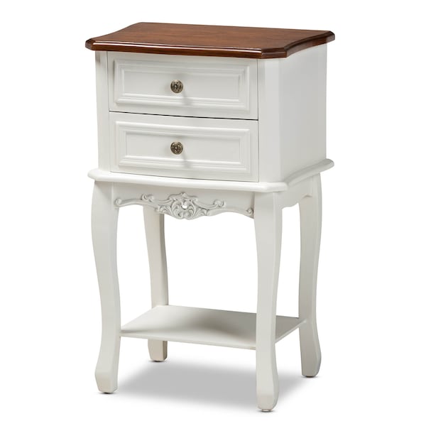Darla French White and Cherry Brown Finished Wood 2-Drawer Nightstand
