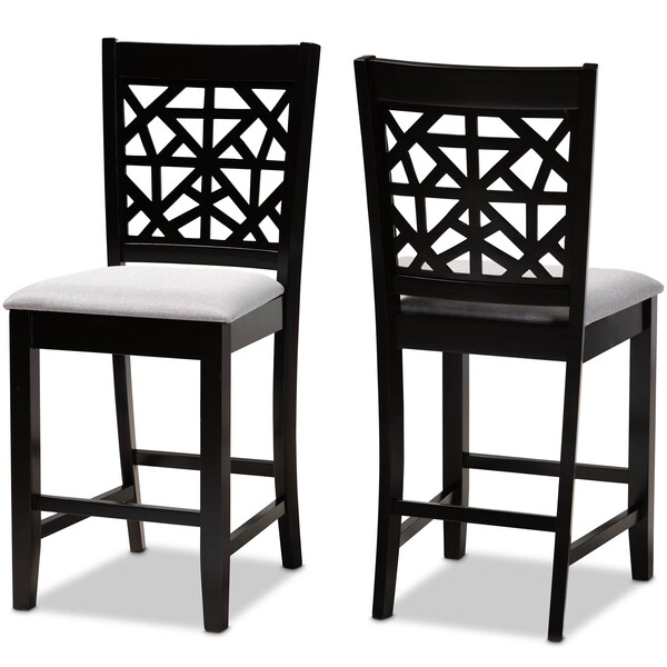 Devon Grey Upholstered and Espresso Wood 2-Piece Pub Chair Set