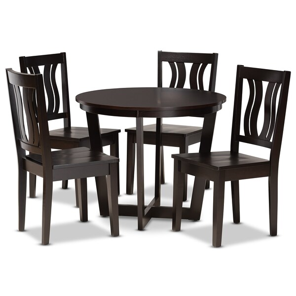 Elodia Modern and Contemporary Transitional Dark Brown Finished Wood 5-Piece Dining Set