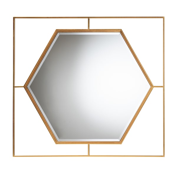 Enrich the mood of your space with the glamorous charm of the Gates accent wall mirror. Made in China, this luxe piece consists of an openwork metal frame fitted with a large central mirror. The hexagonal shape of the mirror lends crisp geometry while complementing the clean angles of the square-shaped frame. The Gates will arrive fully assembled and is wall-mountable. A visually impressive addition to any interior, the Gates accent wall mirror exudes opulent charm.