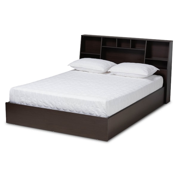 Geoffrey Dark Brown Wood Queen Size Platform Storage Bed with Shelves