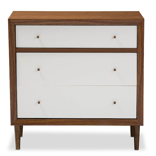 Harlow Mid-century Modern White and Walnut Wood 3-drawer Chest