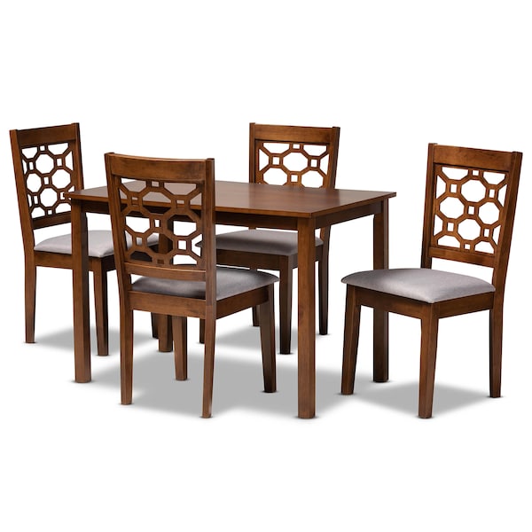 Henry Grey Upholstered and Walnut Wood 5-Piece Dining Set