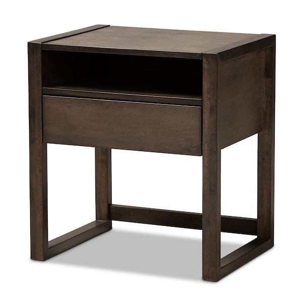 With its clean lines and dark wood tones, the Inicio nightstand adds modern style to any bedroom. Constructed from wood, the Inicio showcases an elegant ash brown finish that highlights the natural tones in the wood. One drawer and one shelf supply ample space to store bedside essentials. Its open frame provides a light, airy feel. Pair this nightstand with the Inicio bed to complete the look. The Inicio nightstand requires assembly.