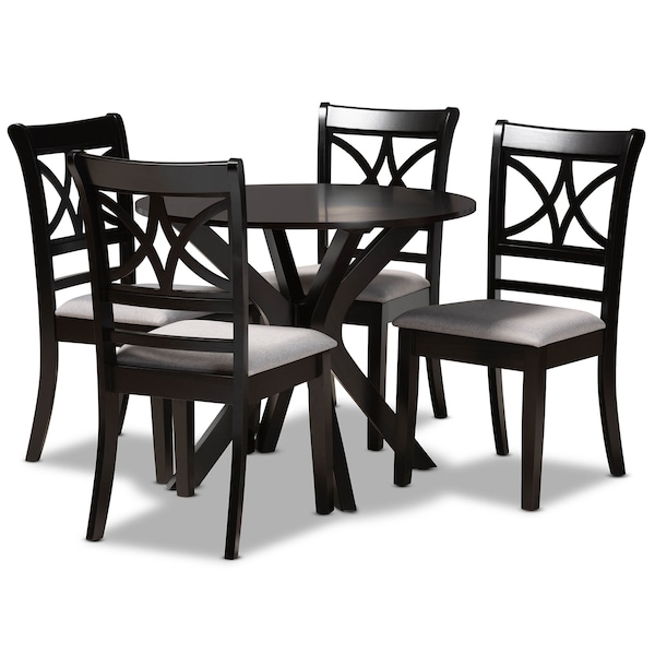 Julia Grey Upholstered and Dark Brown Finished Wood 5-Piece Dining Set