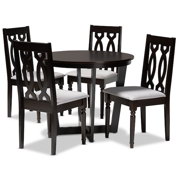 Julie Grey Upholstered and Dark Brown Finished Wood 5-Piece Dining Set