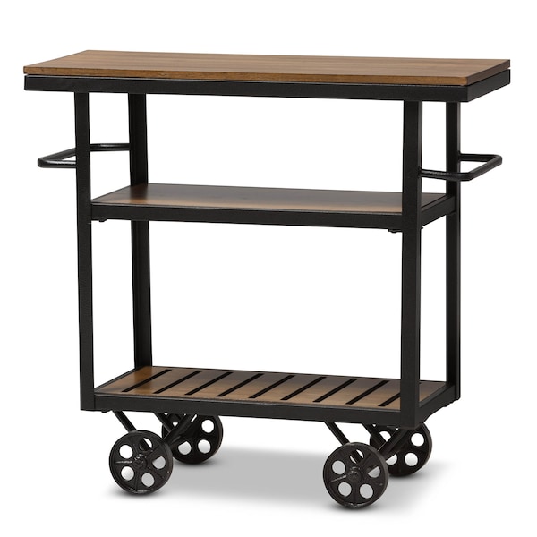 Kennedy Black Finished Metal Distressed Wood Mobile Serving Cart (Discontinued)