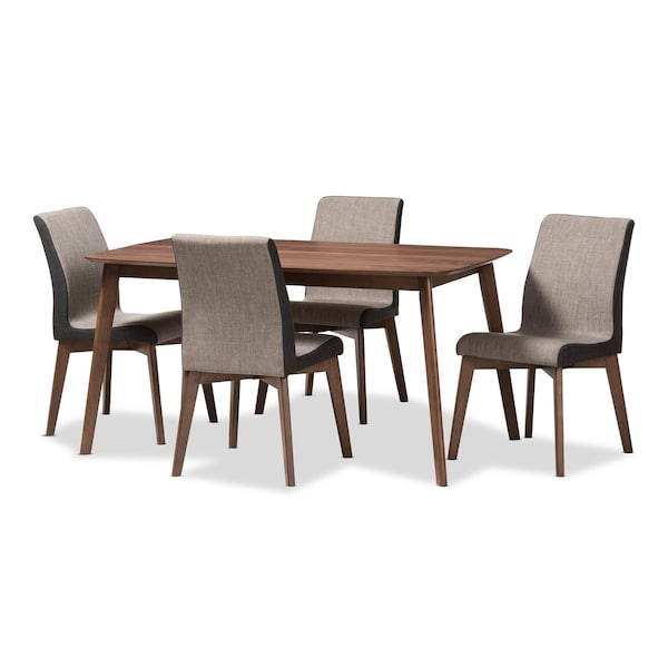 Kimberly Mid-Century Modern Beige and Brown 5-Piece Dining Set