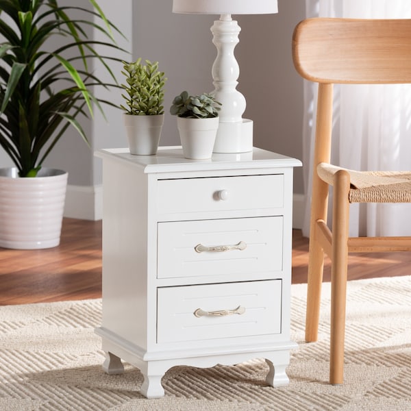 Layton Traditional White Finished Wood 3-Drawer Nightstand (Discontinued)