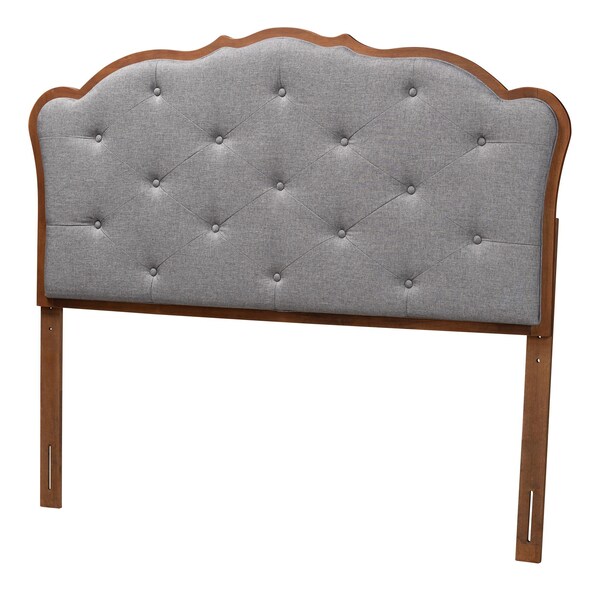 Leandra Classic and Traditional Grey Fabric and Walnut Brown Finished Wood Queen Size Headboard